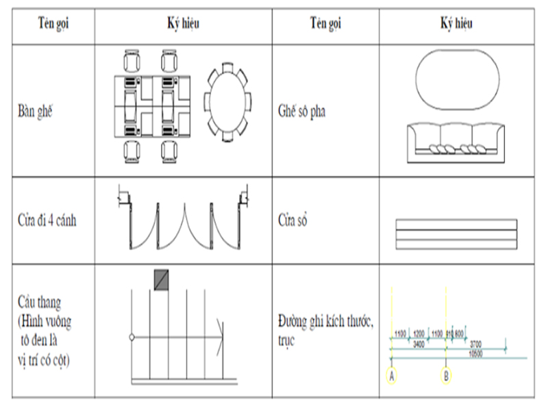 Để có Cách đọc bản vẽ thiết kế nhà đúng đắn nhất bạn phải nắm rõ các ký hiệu trong từng bản vẽ. Vì vậy chúng tôi giới thiệu với các bạn một số ký hiệu thông dụng trong hồ sơ thiết kế nhà.